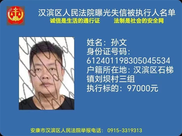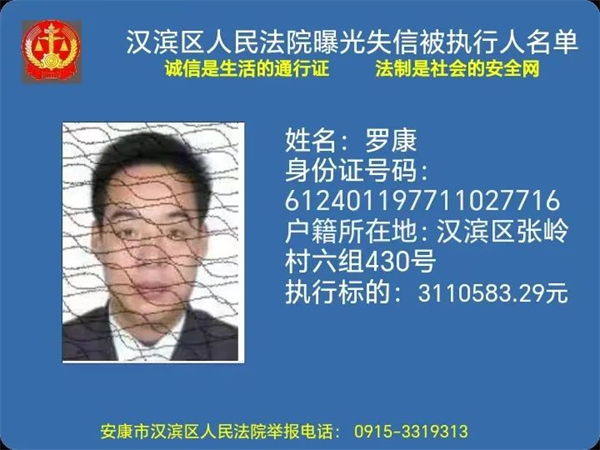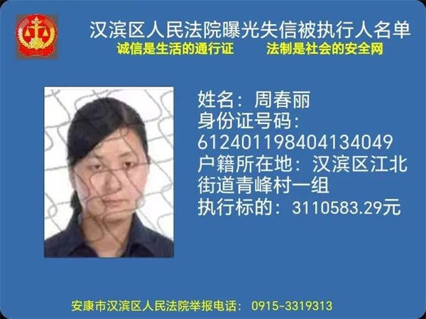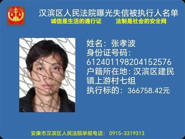 曝光失信 | 安康市漢濱區(qū)人民法院失信被執(zhí)行人曝光名單(2023年第6期)