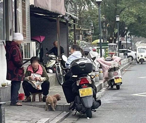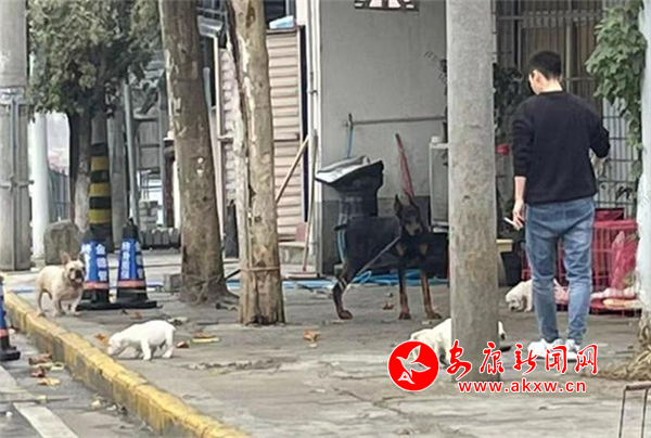 11月9日,在城區(qū)東內(nèi)環(huán)路住戶門前,有市民帶著狗未系繩和鄰居聊天,狗在門前隨意跑動。(圖文/馬婷)CSu安康新聞網(wǎng)