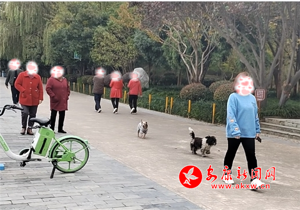 11月9日上午,漢江公園公園步道有市民遛狗未牽繩。(圖文/周薇)f7S安康新聞網(wǎng)