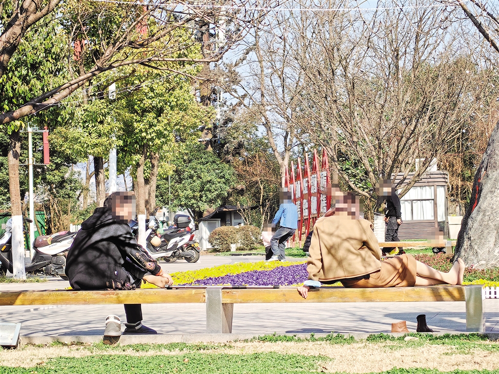 春節(jié)假期天氣晴好,不少市民、游客紛紛外出游玩,感受節(jié)日的輕松歡愉。記者在走訪桃花源過程中,發(fā)現(xiàn)有游客攀爬到景觀石頂部,示意同伴拍照,還有部分游客有踩踏……