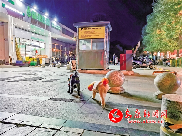 3月16日,安康中心城區(qū)某小區(qū)內(nèi)有市民遛狗不牽繩。鄭時根 攝……