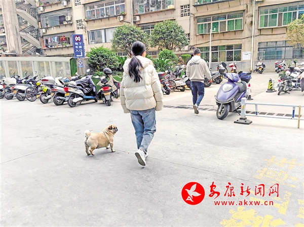 2月25日,安康中心城區(qū)某小區(qū)內(nèi)有市民遛狗不牽狗繩。 鄭時根 攝……