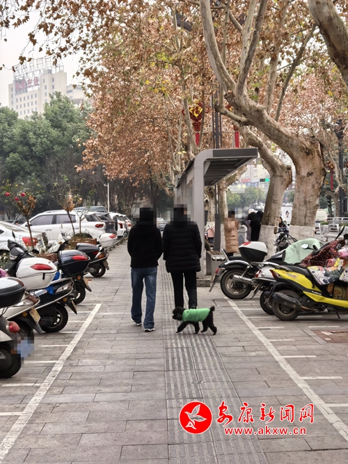 3月12日,在安康育才西路,有市民遛狗不牽繩。 記者 潘潤生 攝……
