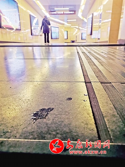 1月16日,有市民在安康城區(qū)江北大道地下通道內(nèi)隨地吐痰。記者 潘潤生 攝……