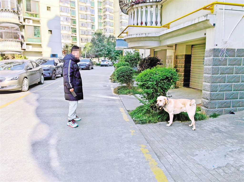 1月26日,我市中心城區(qū)某小區(qū)內(nèi)有市民遛狗不牽狗繩。鄭時根 攝……