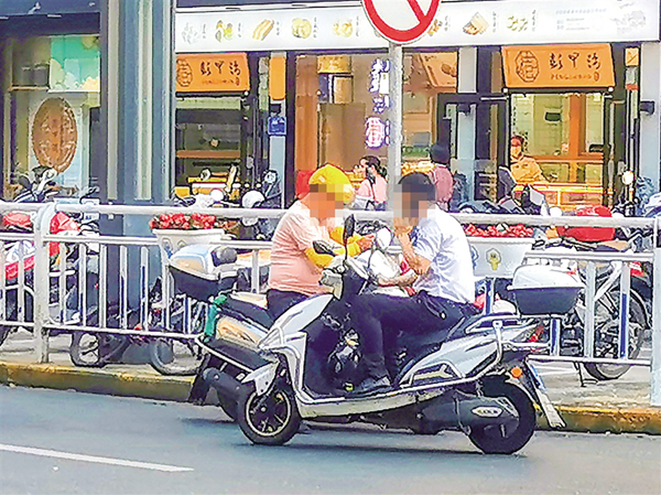 6月25日18時(shí)20分許,中心城區(qū)培新街東路口人流車流如織。行人不走斑馬線,電動(dòng)車、摩托車逆行、超載等現(xiàn)象依然存在。圖為一名沒有戴頭盔的電動(dòng)摩托車駕駛員一邊……