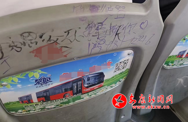 7月7日,筆者乘坐安康市城區(qū)7路公交車發(fā)現(xiàn),公交座椅靠背慘遭“涂鴉”,內(nèi)容不乏廣告標(biāo)語、低俗粗鄙、不堪入目的語言,嚴(yán)重影響乘車心情。希望廣大乘客文明乘車,……