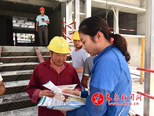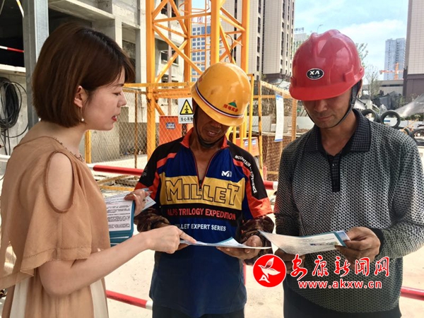 在高新區(qū)部分建筑工地,安康市和漢濱區(qū)人社部門(mén)通過(guò)擺放咨詢臺(tái)、放置展板、發(fā)放印制的宣傳資料、現(xiàn)場(chǎng)答疑等形式,對(duì)《社會(huì)保險(xiǎn)法》《工傷保險(xiǎn)條例》在維護(hù)職工權(quán)益方面的重要意義、工傷保險(xiǎn)參保繳費(fèi)政策、工傷認(rèn)定申辦程序以及工傷保險(xiǎn)待遇等方面進(jìn)行宣傳。