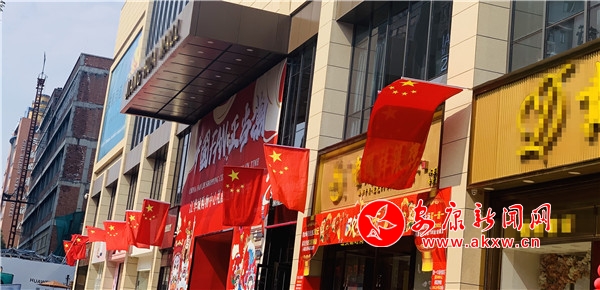 本網(wǎng)訊(實習(xí)記者 李瑤)為慶祝新中國成立70周年,安康中心城區(qū)各大商家都陸陸續(xù)續(xù)地在店門口掛上了顏色鮮艷的五星紅旗,放眼望去,鮮艷奪目的五星紅旗迎風(fēng)飄揚,為安康中心城區(qū)的街道增添了一道亮麗的風(fēng)景線。jai安康新聞網(wǎng)