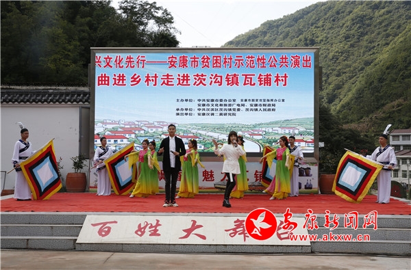 此次活動由中共安康市委辦公室、安康市文化和旅游廣電局、安康市財政局共同主辦;漢濱區(qū)茨溝鎮(zhèn)衛(wèi)生院醫(yī)務(wù)人員現(xiàn)場送醫(yī)送藥,鎮(zhèn)政法機關(guān)向群眾宣傳解讀了掃黑除惡及綜治知識;鎮(zhèn)社保站就百姓關(guān)心的就業(yè)扶貧政策進行了現(xiàn)場講解。據(jù)統(tǒng)計,現(xiàn)場有300余名群眾觀看了本次演出活動。