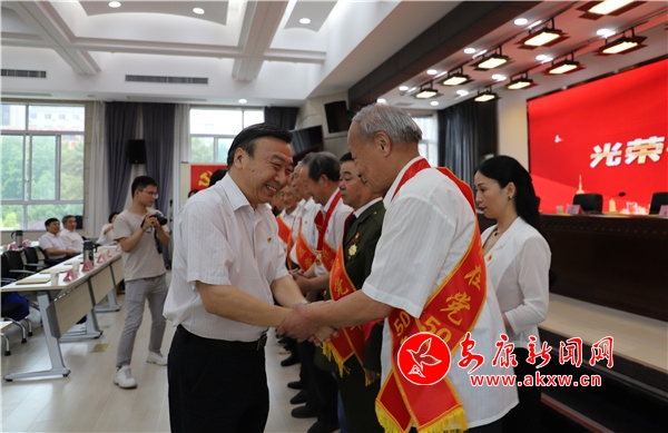 為慶祝中國(guó)共產(chǎn)黨成立100周年,今年黨中央首次向黨齡達(dá)到50周年、一貫表現(xiàn)良好的黨員頒發(fā)“光榮在黨50年”紀(jì)念章。據(jù)了解,經(jīng)各機(jī)關(guān)基層黨組織逐級(jí)統(tǒng)計(jì)、公示、審核,市直機(jī)關(guān)共有412名黨員符合上述條件。此次會(huì)議共邀請(qǐng)了10名老黨員代表到會(huì),向他們頒發(fā)“光榮在黨50年”紀(jì)念章。