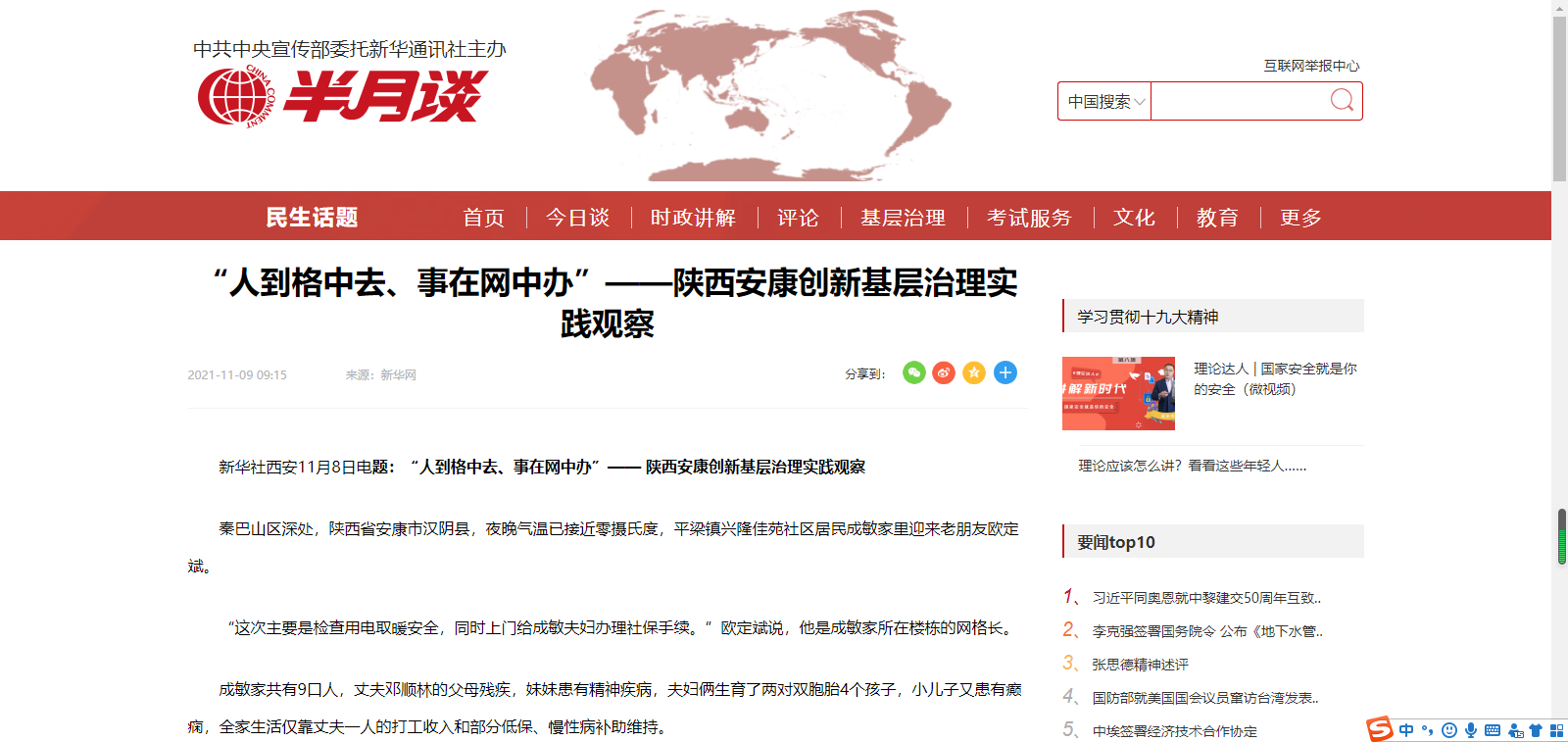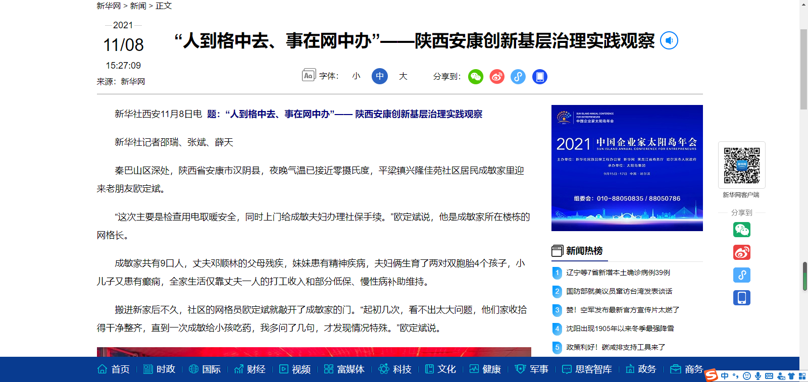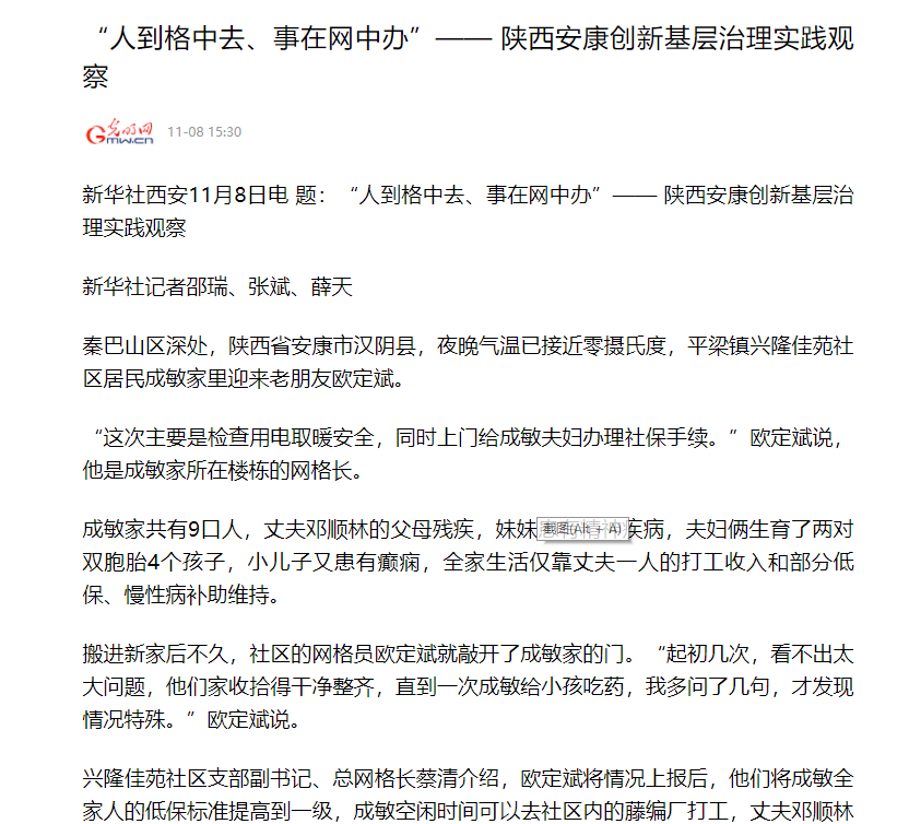 該模式是我市積極探索基層治理的生動(dòng)實(shí)踐,已在全市推廣。稿件發(fā)出后,新華網(wǎng)、光明網(wǎng)、半月談、中國(guó)小康網(wǎng)、21CN新聞、湖北日?qǐng)?bào)等80余家中省市媒體紛紛轉(zhuǎn)載,進(jìn)一步提升了我市“321”基層治理模式在全國(guó)范圍內(nèi)的影響力。一起來(lái)看看新華社記者眼中的安康基層治理實(shí)踐。