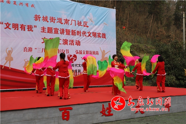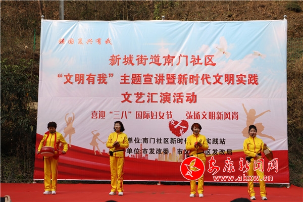 本網(wǎng)訊(記者 趙漪湉)為傳播文明理念,弘揚時代新風,鞏固和提升創(chuàng)建全國文明城市工作成果,3月6日,市發(fā)改委、市文聯(lián)、漢濱區(qū)發(fā)改局、新城街道南門社區(qū)新時代文明實踐站聯(lián)合在南門社區(qū)成功舉辦“文明有我”主題宣講暨新時代文明實踐站文藝匯演。