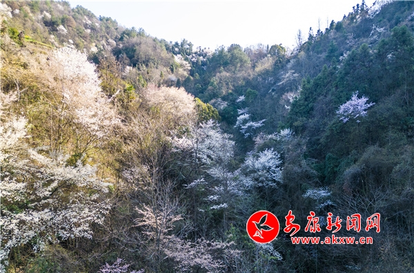 本網(wǎng)訊(記者 李俊 實習(xí)記者 卜昊天)近日,漢濱區(qū)晏壩鎮(zhèn)漫山的野生櫻桃花在和煦的春風(fēng)中競相盛開。遠(yuǎn)眺山林,從山腳到山頂次第綻放,山澗幽谷處處粉白,民居藏于其中,宛若世外桃源,起伏的山脈被一簇簇壓滿整個枝頭的櫻桃花所覆蓋。