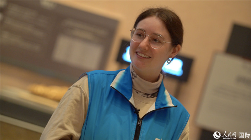 麥安琪在良渚博物院擔任講解志愿者。人民網記者 袁蒙攝