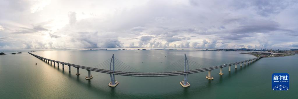 這是2020年9月12日拍攝的港珠澳大橋(無(wú)人機(jī)全景照片)。新華社記者 陳曄華 攝