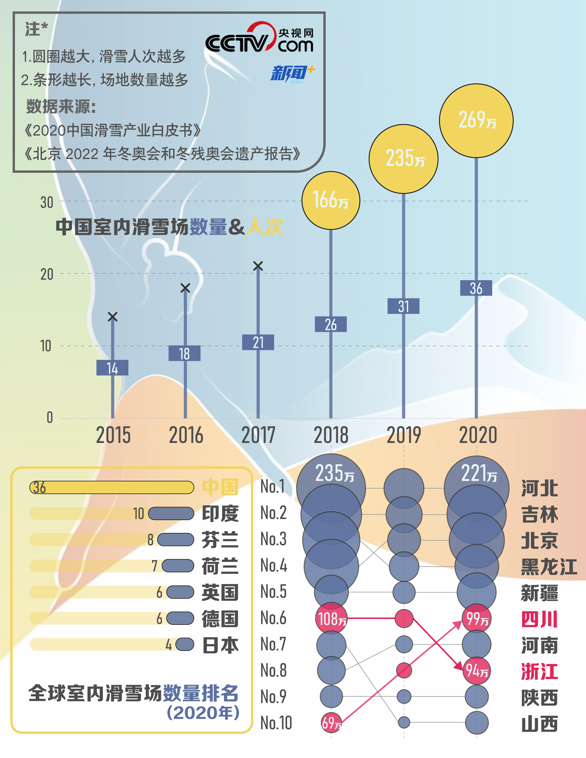 盡管與國際上眾多滑雪產(chǎn)業(yè)發(fā)達(dá)國家相比,中國戶外雪場的整體規(guī)模還存在不小的差距,但從室內(nèi)滑雪場的發(fā)展來看,截至2020年年底,國內(nèi)開業(yè)的室內(nèi)滑雪場館已達(dá)36家,遙遙領(lǐng)先,位居榜首。