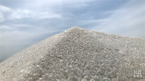 △鹽湖出產(chǎn)的河?xùn)|大鹽。(總臺(tái)央視記者石偉明拍攝)