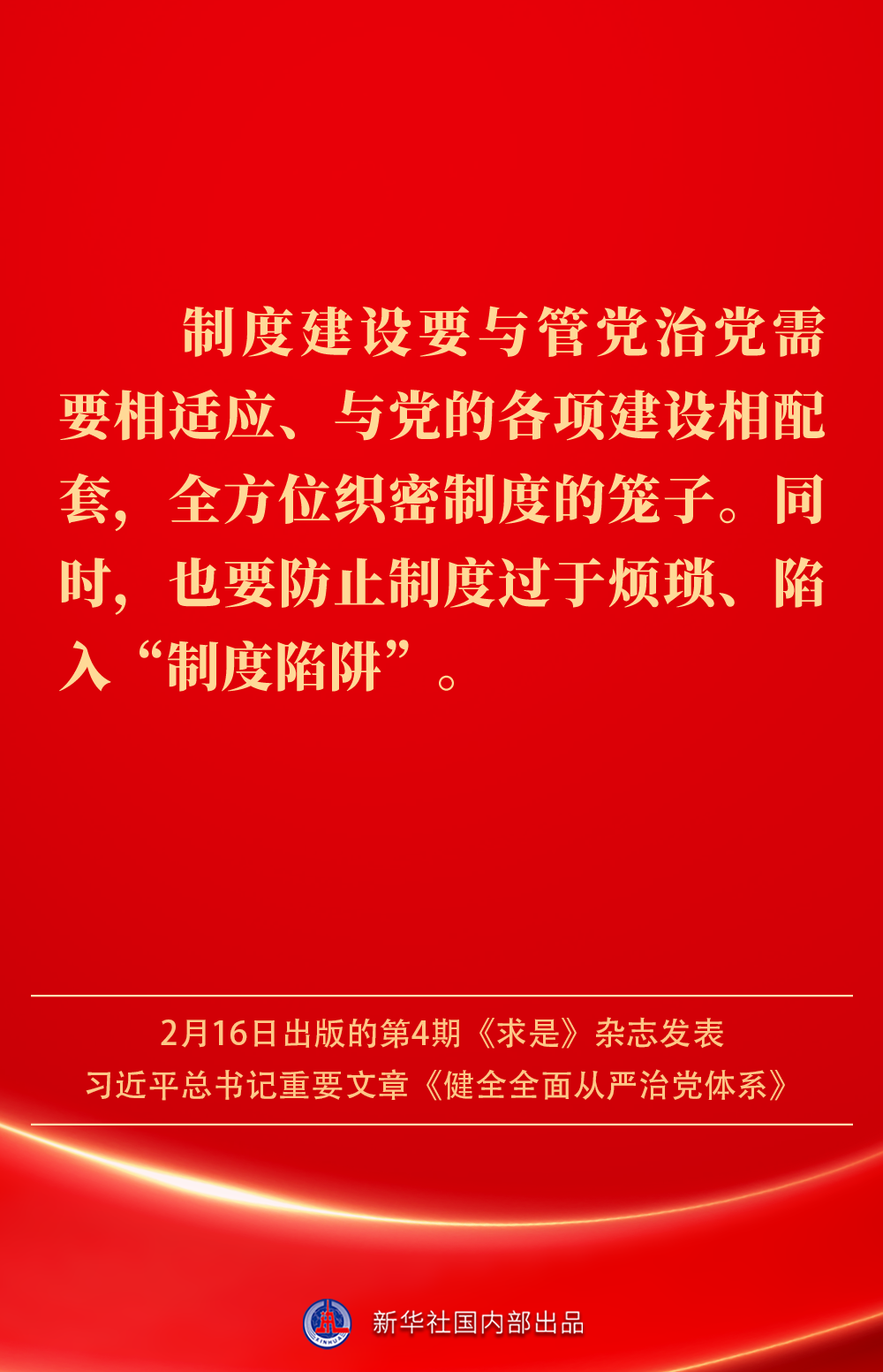 2月16日出版的第4期《求是》雜志發(fā)表習(xí)近平總書記重要文章《健全全面從嚴(yán)治黨體系》。如何進(jìn)一步健全要素齊全、功能完備、科學(xué)規(guī)范、運(yùn)行高效的全面從嚴(yán)治黨體系?習(xí)近平總書記闡明要旨——Evk安康新聞網(wǎng)