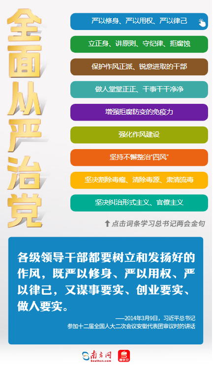 全面從嚴治黨,是習近平總書記一直以來都非常重視的話題。他站在戰(zhàn)略和全局的高度,以高遠的歷史眼光看待全面從嚴治黨、堅定不移推進反腐敗斗爭。