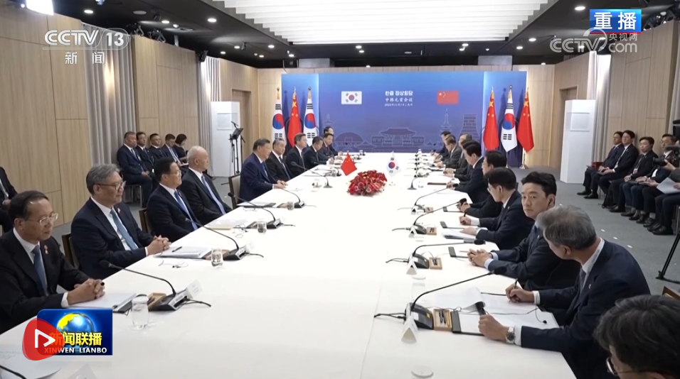 當(dāng)?shù)貢r(shí)間11月1日下午,韓國(guó)總統(tǒng)李在明同中國(guó)國(guó)家主席習(xí)近平在慶州博物館舉行會(huì)談。