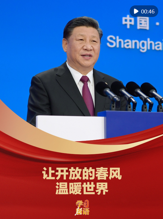 習(xí)近平主席曾在進(jìn)博會(huì)上,用三個(gè)“不會(huì)變”,詮釋了中國(guó)與世界共享機(jī)遇、互利共贏(yíng)的胸懷與擔(dān)當(dāng),展示了堅(jiān)定不移的開(kāi)放決心。進(jìn)博之約向世界許下中國(guó)之諾:中國(guó)愿同各國(guó)一道,共建開(kāi)放型世界經(jīng)濟(jì),讓開(kāi)放的春風(fēng)溫暖世界!