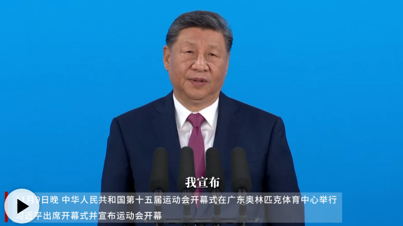 11月9日晚,中華人民共和國(guó)第十五屆運(yùn)動(dòng)會(huì)在廣東省廣州市隆重開幕。中共中央總書記、國(guó)家主席、中央軍委主席習(xí)近平出席開幕式并宣布運(yùn)動(dòng)會(huì)開幕。cy9安康新聞網(wǎng)