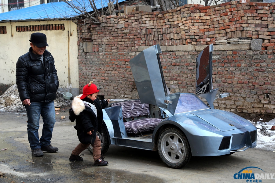 鄭州大爺自造“蘭博基尼”送孫子