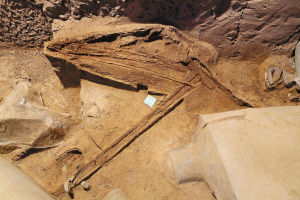 秦俑一號坑自1974年發(fā)現(xiàn)以來,先后進(jìn)行了兩次正式發(fā)掘。2009年6月13日,沉寂了24年之久的秦俑一號坑迎來了第三次大規(guī)模考古發(fā)掘,目前共出土戰(zhàn)車2乘,陶馬3組12匹,陶俑170余件,小件器物近400件(組);清理戰(zhàn)鼓、篋、兵器柲、弓弩、箭箙、韜等重要遺跡數(shù)十處。