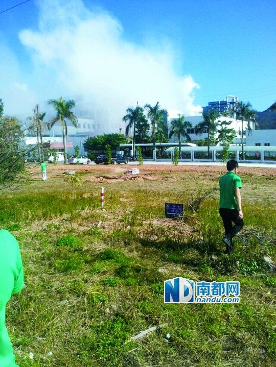 廠房冒出濃煙,工人四散。受訪者供圖南都訊 1日下午3點(diǎn)多,從珠海市高欄港區(qū)曉星氨綸廣東有限公司涌出約兩百名員工,每個(gè)人臉上都寫(xiě)滿(mǎn)了驚慌,廠區(qū)內(nèi)一處管道正向……