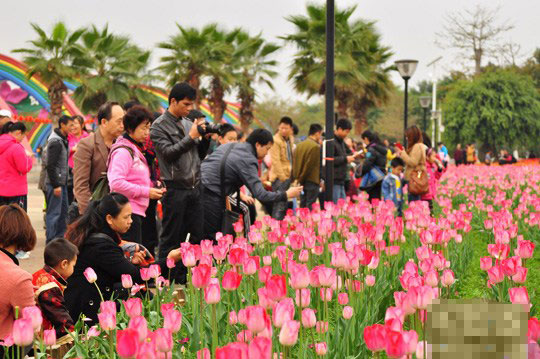 廣西柳州園博園的20萬(wàn)株郁金香競(jìng)相開(kāi)放,五彩繽紛花朵引來(lái)眾多市民觀賞、拍照。周瀟男 攝2月6日,廣西柳州園博園的20萬(wàn)株郁金香競(jìng)相開(kāi)放,吸引了眾多游人前來(lái)觀……