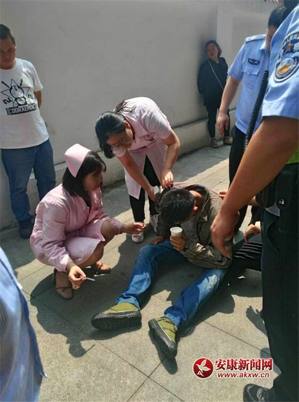 安康新聞網(wǎng)訊(通訊員 屈閔)5月15日的早晨,郵政廣場移動(dòng)獻(xiàn)血房車的工作人員像往常一樣忙碌著,組長孫廉敏坐在體驗(yàn)桌前耐心地為前來獻(xiàn)血的愛心人士測量血壓,正當(dāng)她填寫體檢表時(shí),一位小姑娘沖過來慌張地對(duì)她說:“醫(yī)生姐姐,你能過去看看,那邊有個(gè)人暈倒了!”孫廉敏一轉(zhuǎn)頭就看見離獻(xiàn)血車不遠(yuǎn)的地方躺著一名男子,她扔下筆沖了過去,跪在了男子身邊,拍著他的肩膀大聲呼喊,而男子卻沒有什么反應(yīng),孫廉敏立即撥打了120急救電話,接著給他測量了血壓,發(fā)現(xiàn)一切正常后,便請(qǐng)一起趕來的巡警同志幫忙扶起了男子。過了一會(huì)兒,男子似乎有了些意識(shí),嘴里嗚咽著,眼角還掛淚,孫廉敏判斷男子可能是遇到了什么傷心事,身體上沒有大礙,便趕緊讓同事潘冬妮拿來兩支葡萄糖,慢慢給他喂下。大約過了十分鐘,男子意識(shí)逐漸清醒了過來,他告訴巡警,自己是外地人,來安康務(wù)工,被人騙了,現(xiàn)在回不了家,體力不支才暈了過去,在最終確認(rèn)了身體沒有大礙后,巡警便帶著男子去了救助站。