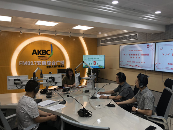 安康新聞網(wǎng)訊(通訊員 屈閔)6月13日下午17時(shí),F(xiàn)M89.7《897超能說》特意在6月14日世界獻(xiàn)血者日前邀請(qǐng)到三位獻(xiàn)血者參與直播節(jié)目,他們分別是市國(guó)稅局副局長(zhǎng)袁康杰、華西醫(yī)院檢驗(yàn)科主任張成勇以及安康學(xué)院學(xué)生朱子昊。