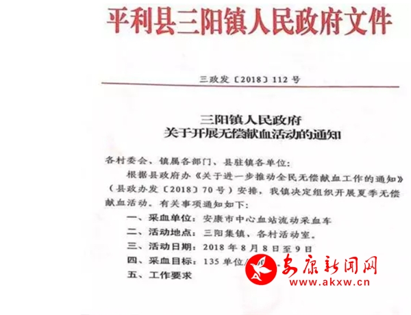 安康新聞網(wǎng)訊(通訊員 汪平)玫瑰予人,手留余香。8月8日-9日,伴隨著安康市中心血站獻(xiàn)血車在平利縣三陽鎮(zhèn)鎮(zhèn)頭村間蜿蜒,一顆顆愛心在涌動,一滴滴熱血在融情,文明奉獻(xiàn)之花齊開,和諧大愛之花怒放!