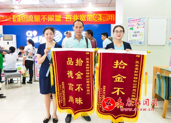 安康新聞網(wǎng)訊(通訊員 張彥杰 楊錚)9月7日中國(guó)移動(dòng)嵐皋分公司營(yíng)業(yè)廳一開(kāi)門(mén),一名叫翟遠(yuǎn)興的客戶就向移動(dòng)營(yíng)業(yè)班及賣場(chǎng)營(yíng)業(yè)員陳銀贈(zèng)送了拾金不昧,品德高尚兩面錦旗,F(xiàn)場(chǎng)辦理業(yè)務(wù)的顧客紛紛豎起手指向嵐皋移動(dòng)點(diǎn)贊。