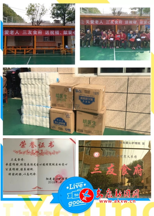 安康新聞網(wǎng)訊(記者 周。 愛不是靠說,而是靠做。說得再多不如踏實去做,愛老關鍵靠行動。昨天是農(nóng)歷9月9日重陽節(jié),為關愛老人,三友食業(yè)免費為護理院老人送溫暖,送早餐、紙巾,尿不濕等老人用品。并在這段時間里為70歲以上老人提供免費早餐。