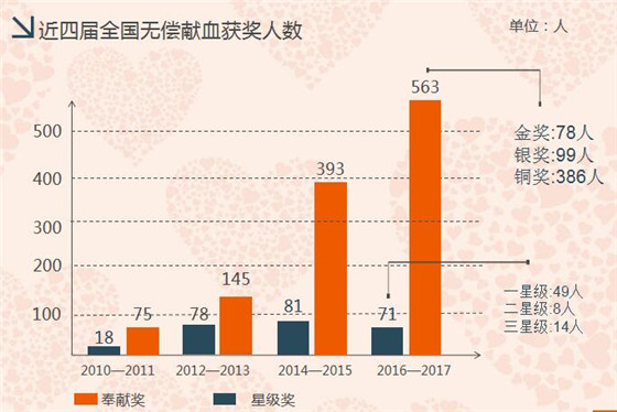 4、我市全國無償獻(xiàn)血奉獻(xiàn)獎獲獎人數(shù)創(chuàng)歷史新高
