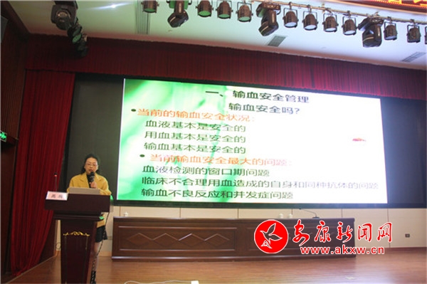 本次培訓(xùn)特別邀請了西安交通大學(xué)第一附屬醫(yī)院輸血科主任王寶燕教授,她結(jié)合自身多年工作經(jīng)驗(yàn),就《臨床輸血流程管理和臨床案例分析》進(jìn)行了深入細(xì)致的講解。安康市中心醫(yī)院輸血科禹梅老師從血液管理、成分血的輸注、評估等方面做了《臨床輸血實(shí)踐與控制》的精彩闡述。安康市中心血站副站長李宏就近年來全市臨床輸血質(zhì)量管理專項(xiàng)督查中存在的問題進(jìn)行了一一剖析,通報(bào)了各臨床用血單位無償獻(xiàn)血募集指標(biāo)完成的情況。