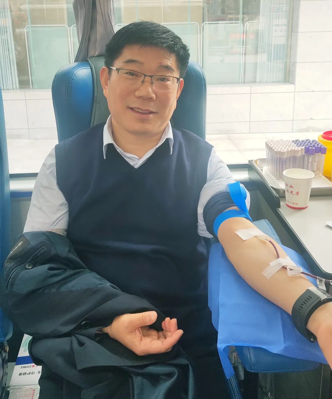 黨辦主任李子梅笑著說(shuō):“我一直想獻(xiàn)血,前幾次因?yàn)樯眢w原因沒(méi)有獻(xiàn)成,還特別遺憾,這次檢測(cè)符合獻(xiàn)血標(biāo)準(zhǔn)后我特別高興,作為醫(yī)務(wù)工作者,能夠?yàn)闊o(wú)償獻(xiàn)血事業(yè)貢獻(xiàn)自己一份微薄的力量,這很有意義。”