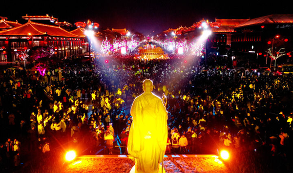 大唐不夜城位于西安大雁塔腳下,南北總長2100米,東西寬500米。在唐代,這里曾是大唐高僧玄奘的譯經(jīng)之處,眾多文人騷客也曾在這里賦詩抒懷,新科進士更把“雁塔題名”視為莫大榮耀。