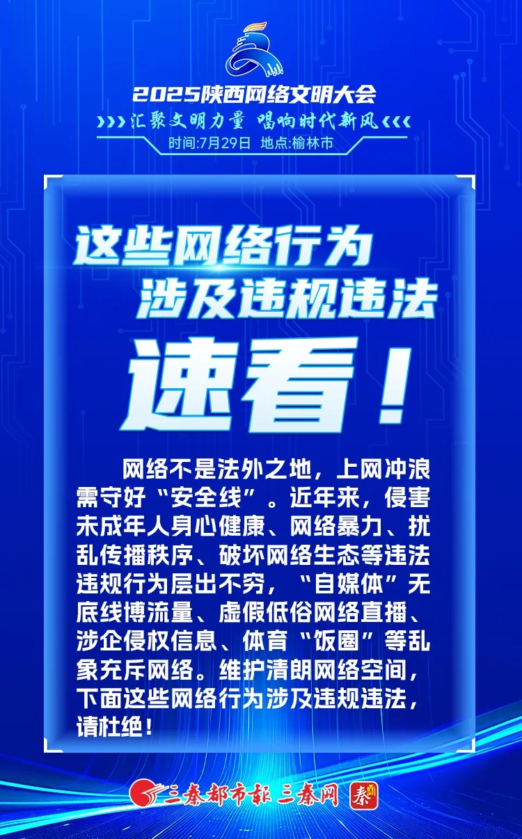 2025陜西網(wǎng)絡(luò)文明大會丨這些網(wǎng)絡(luò)行為涉及違規(guī)違法,速看!