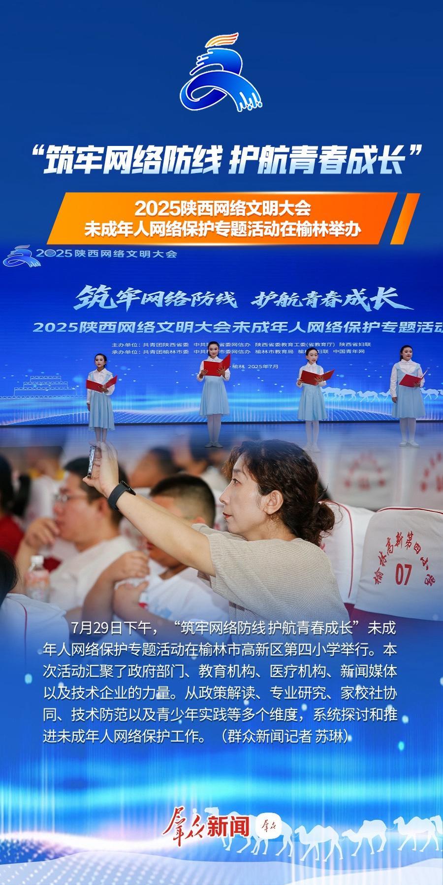 7月29日下午,“筑牢網(wǎng)絡(luò)防線 護航青春成長”2025陜西網(wǎng)絡(luò)文明大會未成年人網(wǎng)絡(luò)保護專題活動在榆林高新第四小學(xué)舉辦。