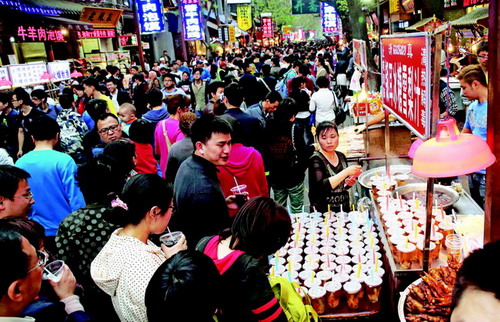 清明小長(zhǎng)假,名揚(yáng)海內(nèi)外的西安市北院門小吃一條街上,灌湯包子、柿子餅、羊肉泡饃、水盆羊肉、鏡糕、烤全羊等上百個(gè)品種的特色小吃吸引了世界各地?cái)?shù)以萬計(jì)的游客……