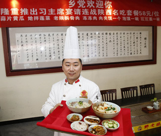 2014年2月19日,西安昆明路,豐慶宮推出習主席請連戰(zhàn)吃飯的套餐,四小份涼菜,肉夾饃、biang biang 面和羊肉泡饃。圖片來源:CFP視覺中國據(jù)報道,2月18日,中共中……