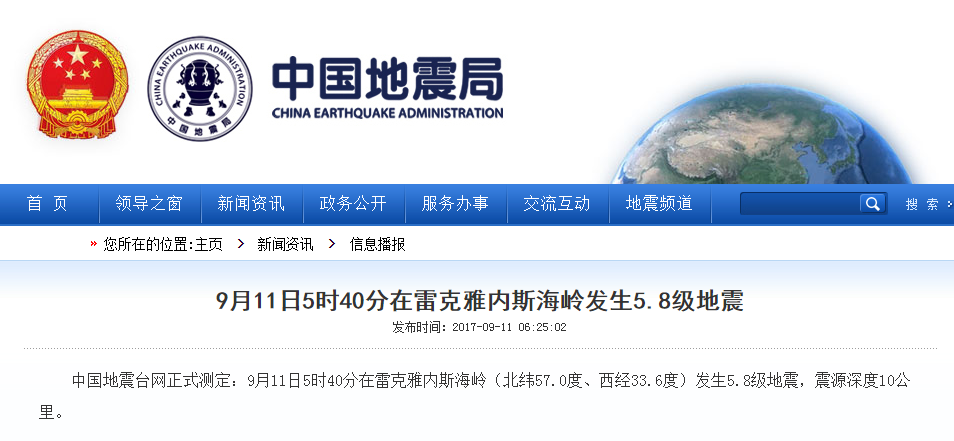 北京時(shí)間9月11日5時(shí)40分,在雷克雅內(nèi)斯海嶺(北緯57.0度、西經(jīng)33.6度)發(fā)生5.8級(jí)地震,震源深度10公里。7HU安康新聞網(wǎng)