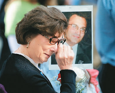 9月11日,美國紐約舉辦活動紀(jì)念“9·11”恐怖襲擊事件16周年。 圖為一名手持遇難者照片的女子。dtS安康新聞網(wǎng)