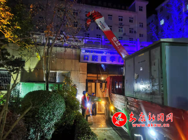 國(guó)網(wǎng)白河縣供電公司立即組織人員前往醫(yī)院查看故障情況,發(fā)現(xiàn)醫(yī)院專變的變壓器因高負(fù)荷燒毀,需要更換變壓器。下午7時(shí),工作人員一邊幫助醫(yī)院協(xié)調(diào)轉(zhuǎn)運(yùn)變壓器設(shè)備,一邊緊急調(diào)用一臺(tái)50千瓦的發(fā)電車,并迅速為醫(yī)院進(jìn)行電源接入,第一時(shí)間為醫(yī)院的核酸檢測(cè)點(diǎn)、疫苗冷藏室、急診等優(yōu)先供電。