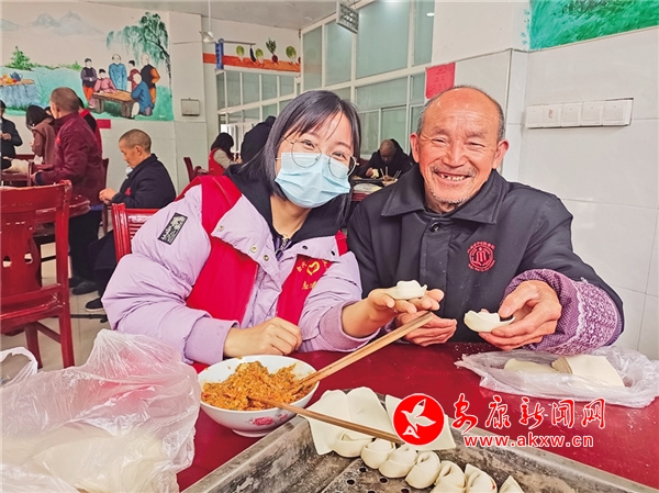 志愿者到養(yǎng)老院包餃子,送去關(guān)愛