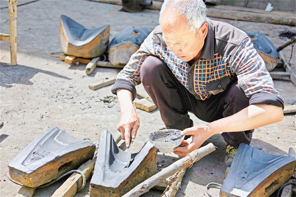 宋祖新的叔祖父是當(dāng)年鏵廠的“掌勺”師傅之一,在一次次觀看大人們操作中,他也學(xué)會(huì)了從制模到熔鐵澆鑄一整套鑄鏵技術(shù)。隨著農(nóng)業(yè)科技的發(fā)展,傳統(tǒng)的鐵鏵制作工藝逐漸被機(jī)械化生產(chǎn)所取代,但在陜南一些山區(qū)坡地仍延續(xù)著犁鏵耕作方式。“前些年,多數(shù)人都選擇外出務(wù)工,種地的少,好多年沒有開爐鑄鏵了,很多年輕人都沒有親自體驗(yàn)過制作過程,聽說我們這兒又開始鑄鏵,連縣城的人都趕來看稀奇!”宋祖新說。
