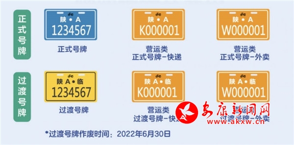 電動自行車號牌號碼均為7位數(shù)字。正式的電動自行車號牌底色為藍(lán)色,字體和框線為白色;過渡號牌底色為黃色,字體和框線為黑色。營運(yùn)類號牌底色為橘色,字體和線框?yàn)榘咨?/span>